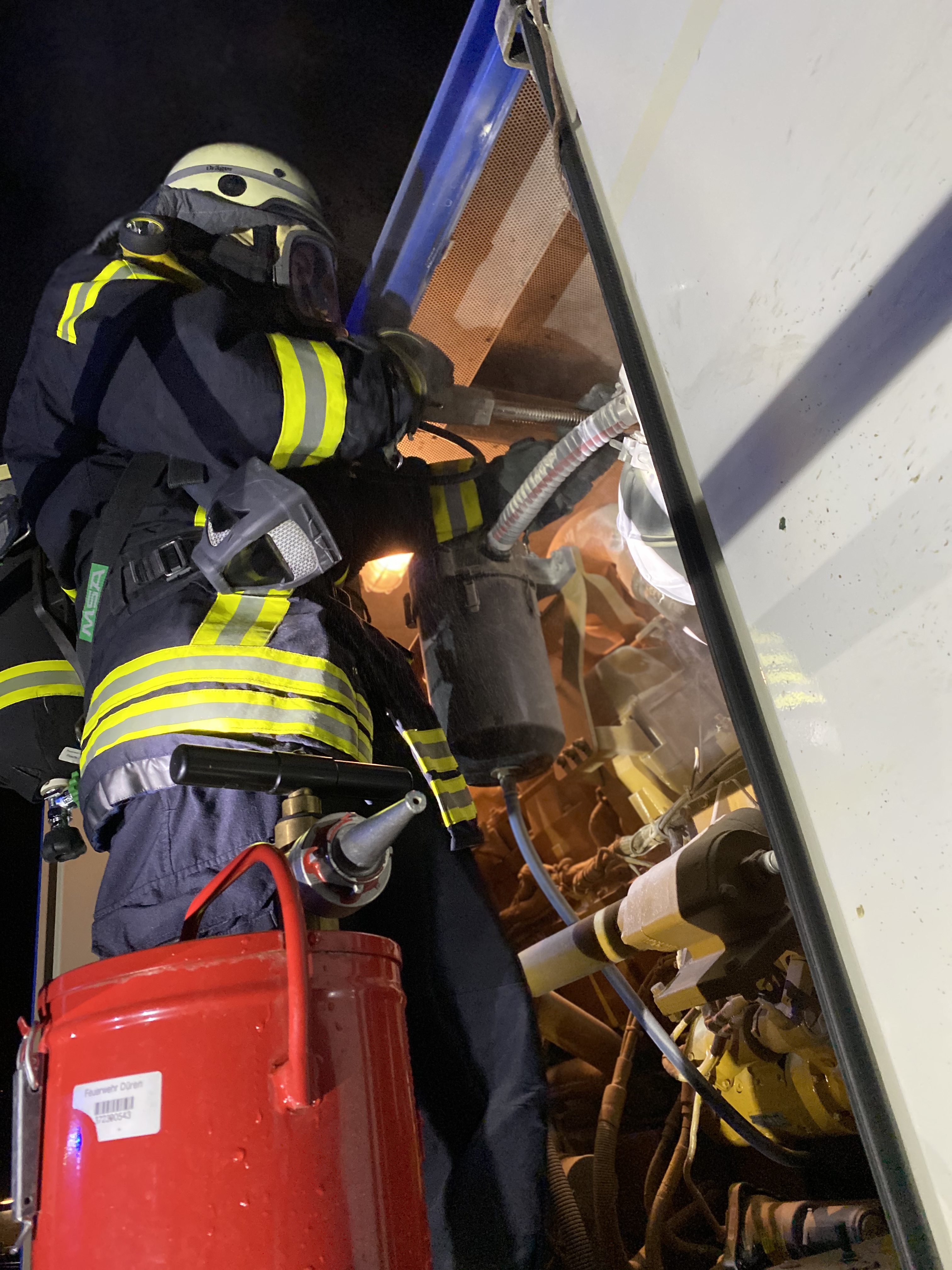 der Motorabdeckung entzündet. Durch das schnelle Eingreifen des Lokführers mit einem Feuerlöscher konnte der Entstehungsbrand unmittelbar gelöscht werden. Die Feuerwehr führte eine Nachkontrolle durch und löschte vereinzelte Glutnester ab. Während des Einsatzes wurde der Grundschutz durch den Löschzug Mitte sichergestellt.