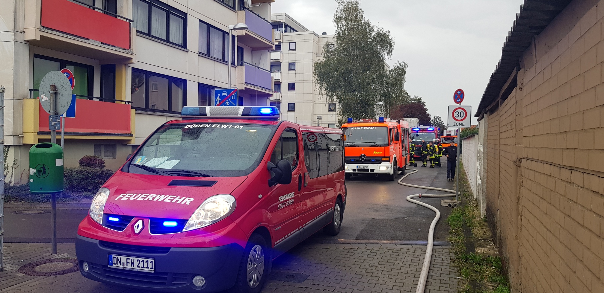 mit den Löschgruppen Mariaweiler, Echtz und Merken, das Löschfahrzeug des Tagesdienst und der Führungsdienst alarmiert. Beim Eintreffen der Feuerwehr wurde eine starke Rauchentwicklung aus dem Keller in einem komplexen Mehrfamilienhaus mit Tiefgarage festgestellt. Umgehend wurden Kräfte der Feuerwehr unter Atemschutz in den verrauchten Treppenraum zur Menschenrettung geschickt. Weiterhin wurde der Treppenraum durch Lüftungsmaßnahmen entraucht und rauchfrei gehalten. Einige Bewohner konnten so von der Feuerwehr aus Ihren Wohnungen gerettet werden. Parallel zu diesen Maßnahmen wurde eine Brandbekämpfung im Keller unter Atemschutz durchgeführt. Im Kellergeschoss konnte ein umfangreicher Brand in der Hauptelektroverteilung lokalisiert werden. Mittels Kohlendioxid-Feuerlöscher konnte der Elektrobrand gelöscht werden. Durch die Feuerwehr und den hinzugezogenen Rettungsdienst wurden 6 Bewohner untersucht und 1 Bewohnerin mit dem Verdacht einer Rauchgasvergiftung leicht verletzt einem Krankenhaus zugeführt. Durch die Größe des Objektes mussten ausgiebige Lüftungsmaßnahmen eingeleitet werden. Der Energieversorger musste aufgrund der Beschädigung die Stromversorgung des betroffenen Gebäudeteils abstellen. Die Feuerwehr Düren war mit über 60 Einsatzkräften vor Ort und der Einsatz war nach 2,5 Stunden beendet.