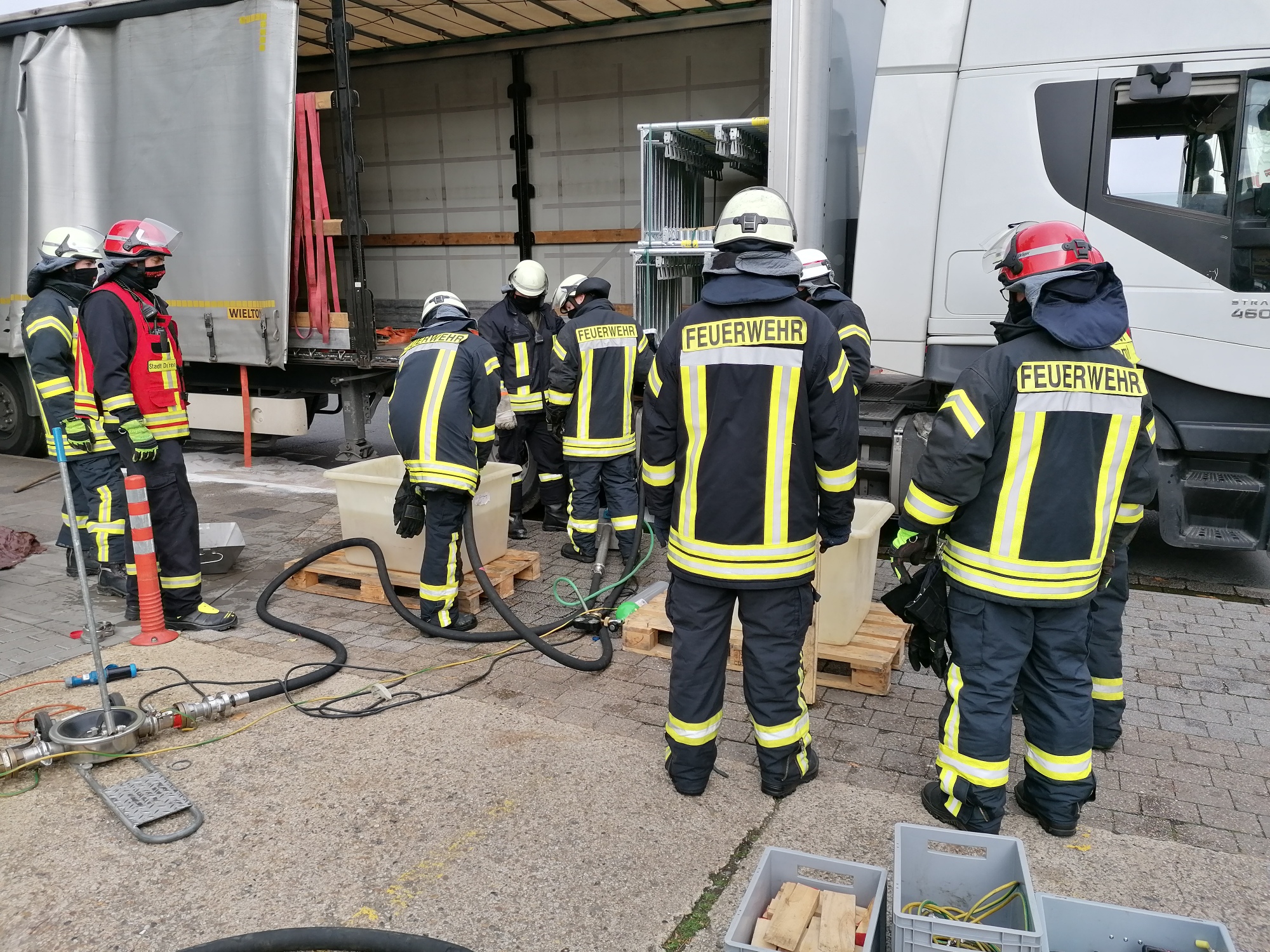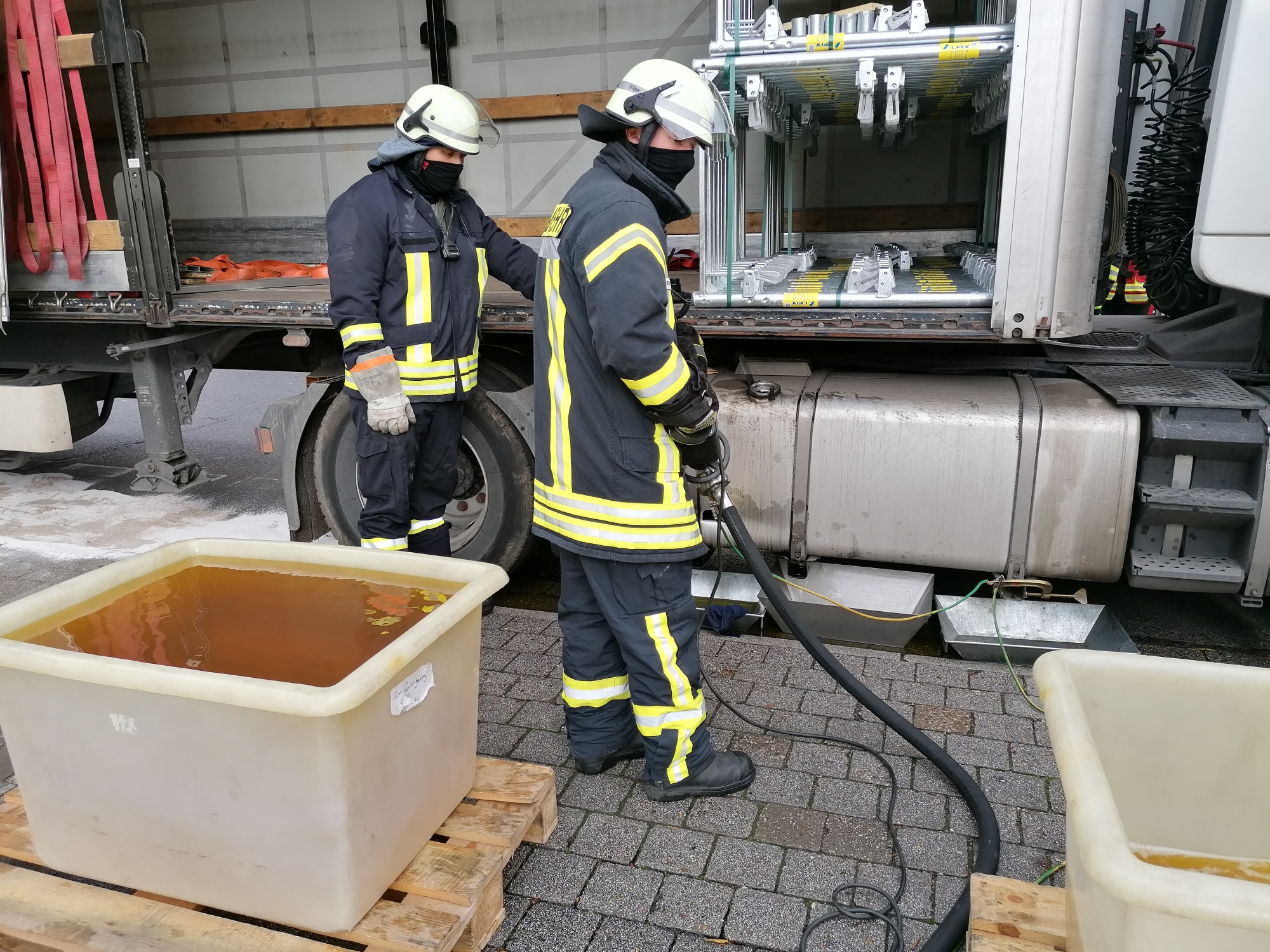 Gabelstapler wurde einer von zwei Dieselkraftstofftanks der Zugmaschine aufgerissen. Beim Eintreffen der Feuerwehr waren bereits größere Mengen Diesel ausgetreten. Der austretende Diesel wurde umgehend aufgefangen sowie der bereits ausgetretene Diesel mit einem Bindemittel gebunden. Durch den Einsatz einer Fasspumpe wurden noch ca. 450l Diesel in andere Behältnisse gepumpt. Die Feuerwehr Düren war mit rund 20 Einsatzkräften vor Ort.
