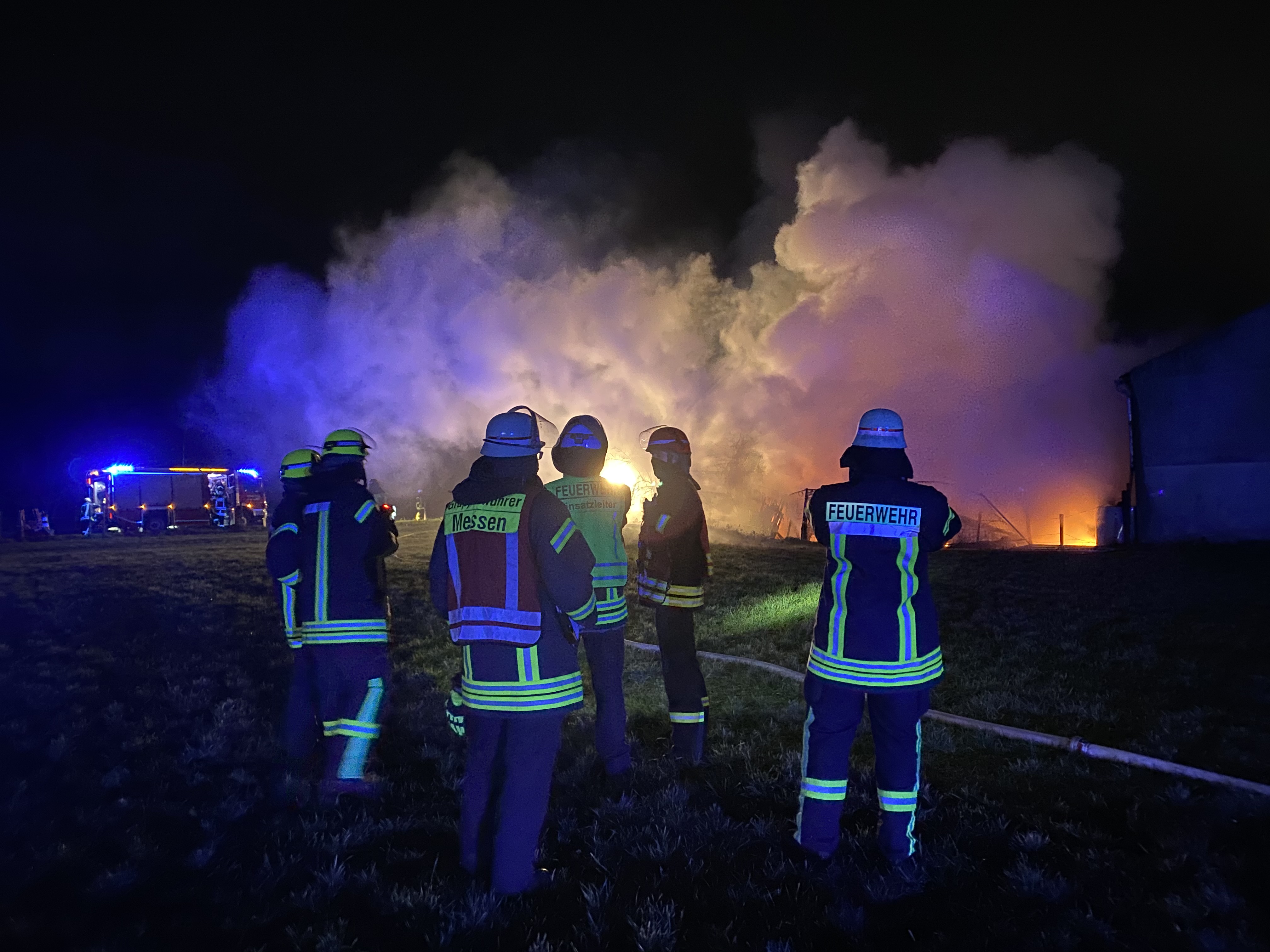 den Einsatz von insgesamt 5 Löschrohren konnte ein Übergreifen der Flammen auf das Gebäude verhindert werden. Die Personen aus dem angrenzenden Wohngebäude konnten nach den erfolgreichen Löscharbeiten alle unverletzt in ihre Wohnungen zurückkehren. Die Feuerwehr war mit insgesamt 76 Feuerwehrleuten ca. 3h im Einsatz.