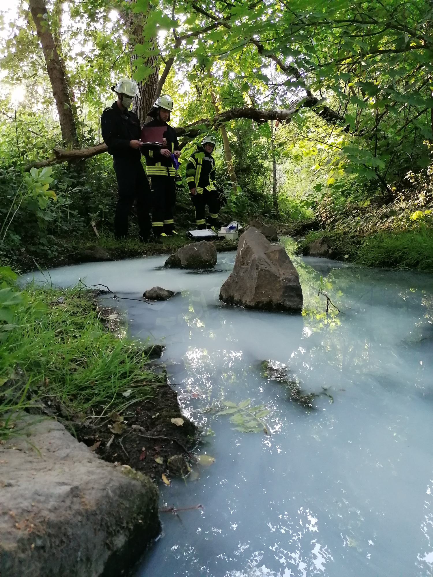 Am heutigen Abend entdeckten Passanten eine weiße, milchige Flüssigkeit auf einem Zulauf der Rur. Die Leitstelle des Kreises Düren entsandte umgehend die hauptamtliche Wache, den