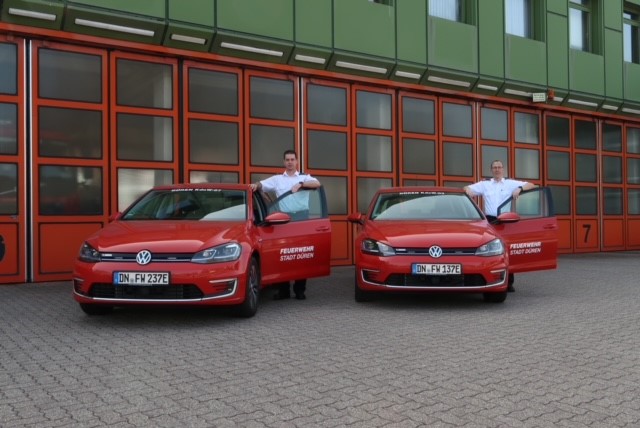 Die Feuerwehr Düren setzt zukünftig auf Elektromobilität in Teilen Ihres Fuhrpark. Hierzu wurden bereits zwei vollelektrische Kommandowagen beschafft. Die neuen Fahrzeuge ersetzen
